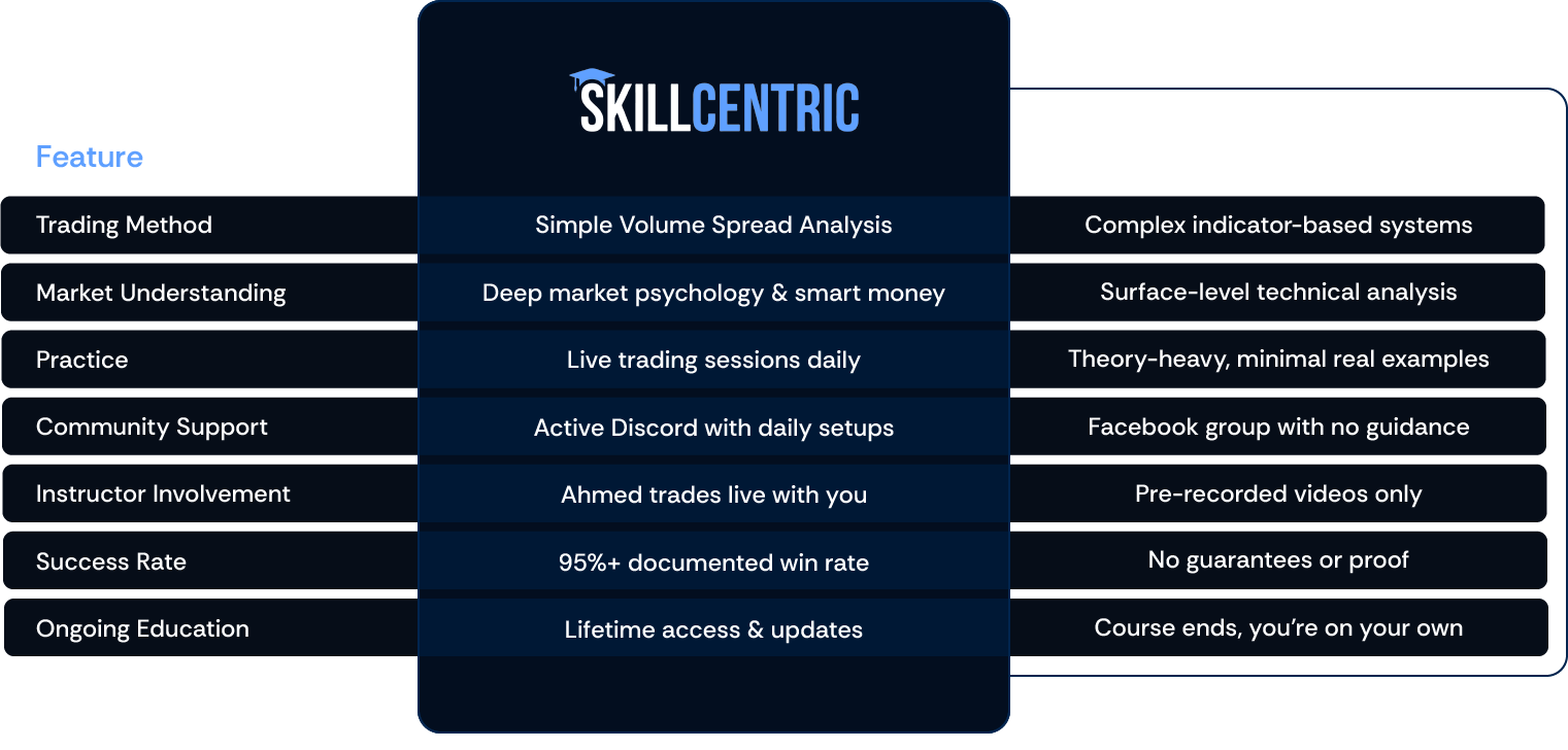 Most courses give you signals or indicators that eventually stop working. Here, you’ll learn to actually read the market like institutions do, which gives you an edge that doesn’t expire.
